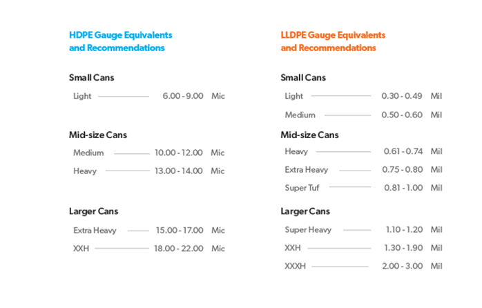 Liner thickness is measured differently depending on the type of bag. Low-density liners are measured in mils, an imperial unit equal to one-thousandth of an inch. A higher mil number indicates a thicker bag. High-density liners, by contrast, are measured in microns, a metric unit equal to one-millionth of a meter. The higher the micron count, the thicker the bag.